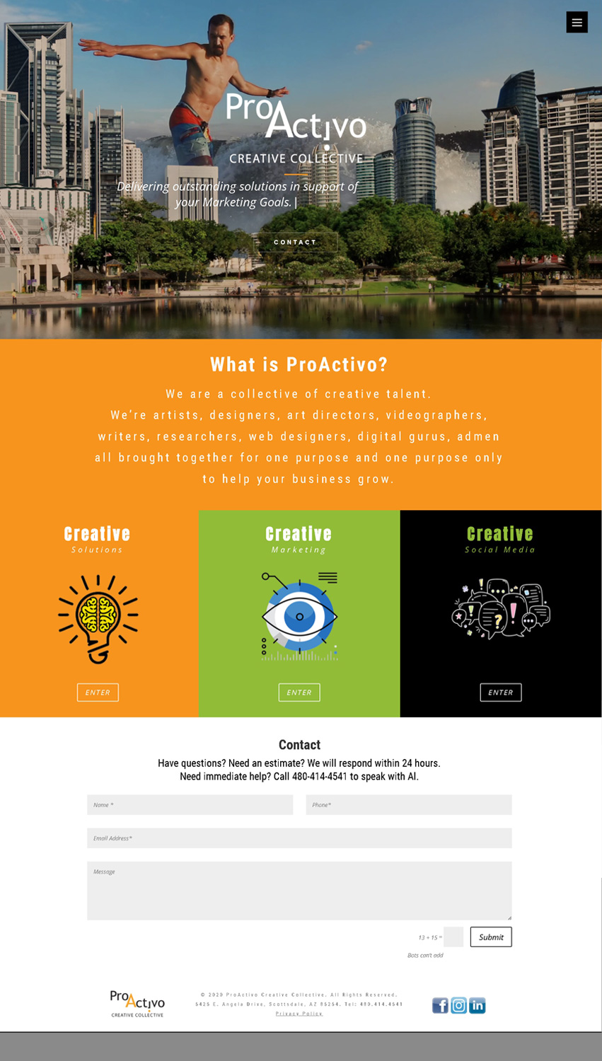 Here is a new web project. ProActivo is an Advertising Agency based in Scottsdale Arizona. The talented designers at CZ designed an incredible website with all the latest web technologies available. The site features a highly mobile responsive and fully informative website that is geared towards client conversions.