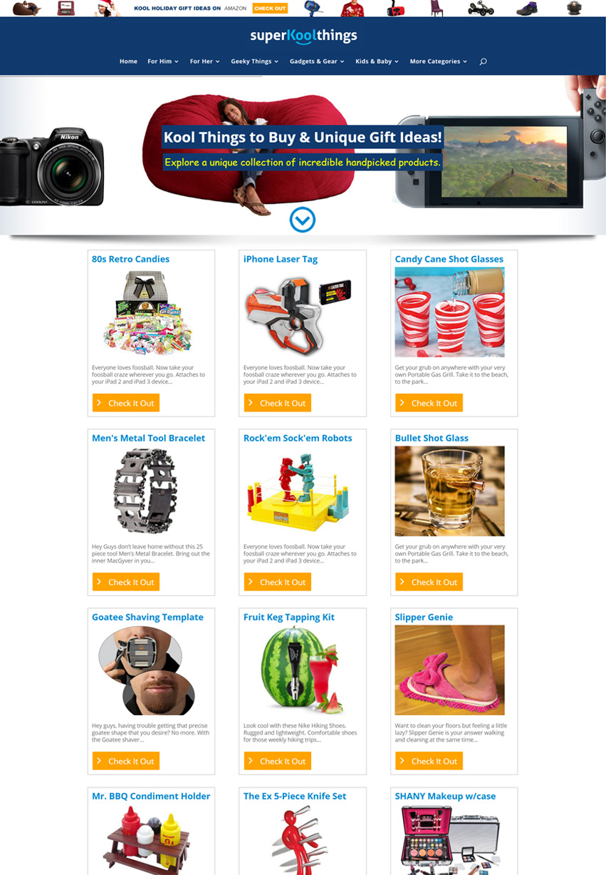 Super Kool Things is a Amazon Ecommerce designed site. The CZ team designed an incredible website with all the latest web technologies available. The site features a highly mobile responsive and fully informative website that is geared towards Amazon affiliate purchases.
